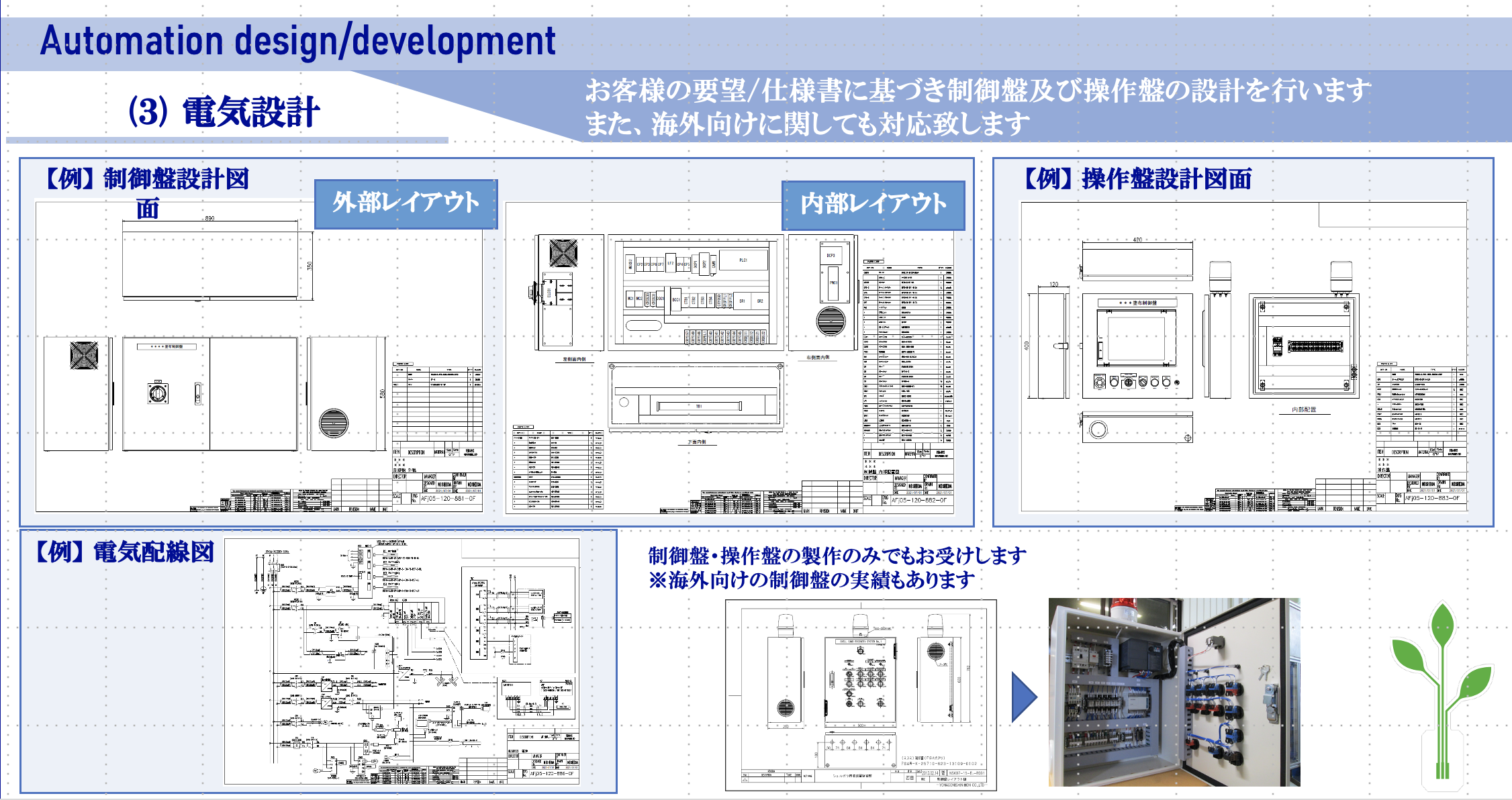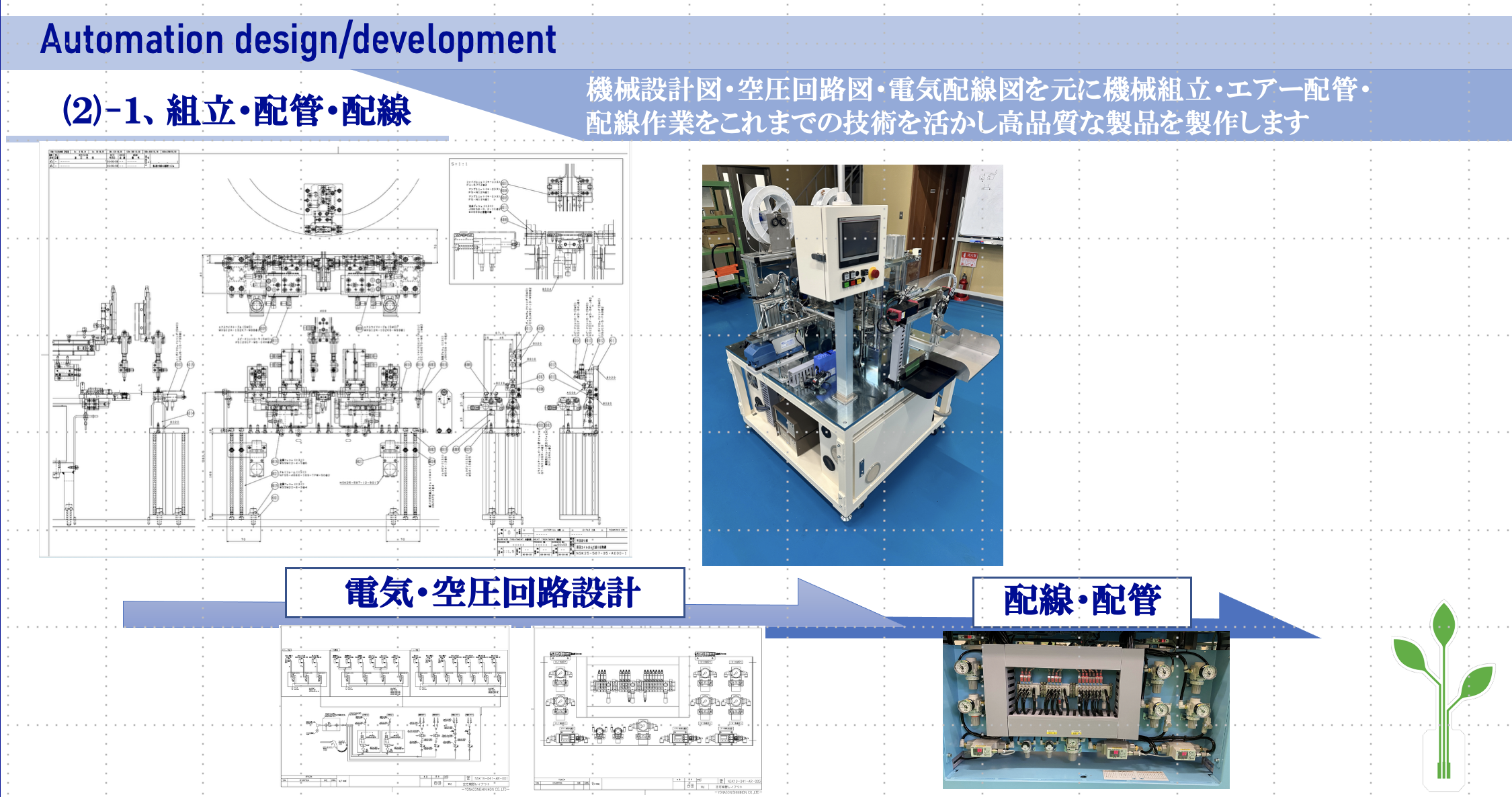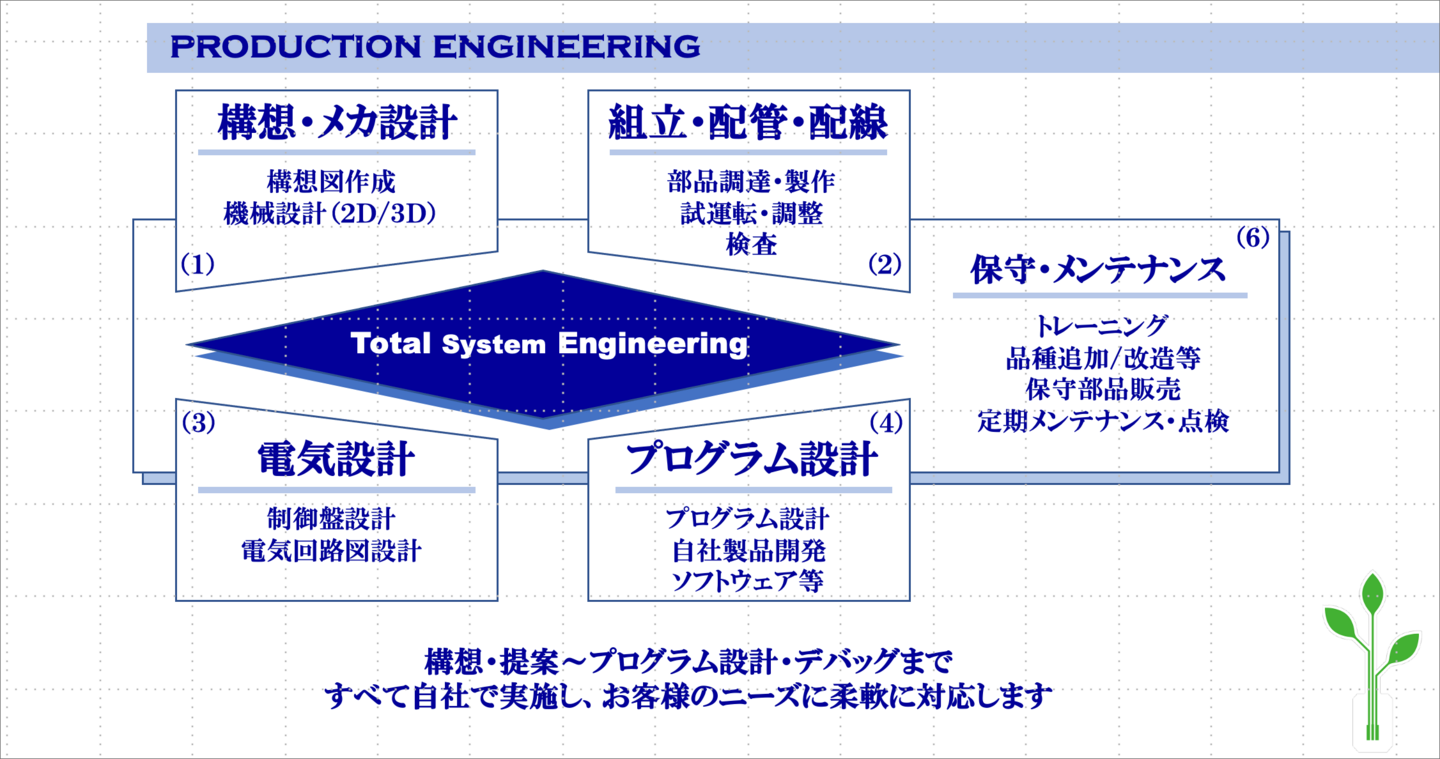 お客様のニーズに合わせた設備を開発・設計し製造からメンテナンスまで一貫しておこなっております。