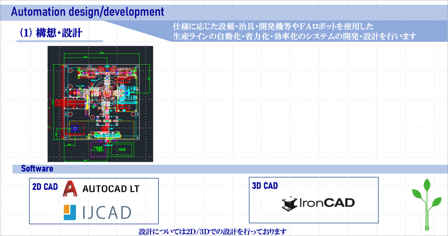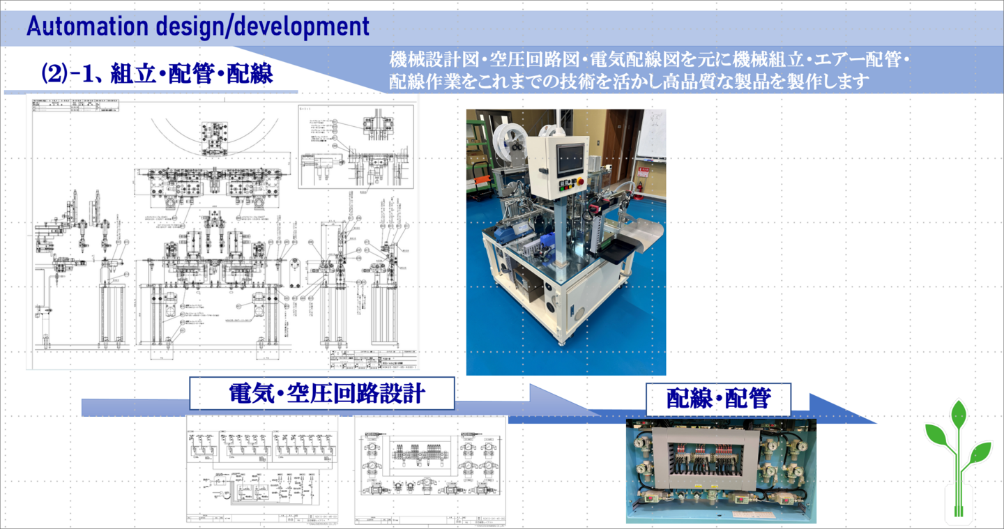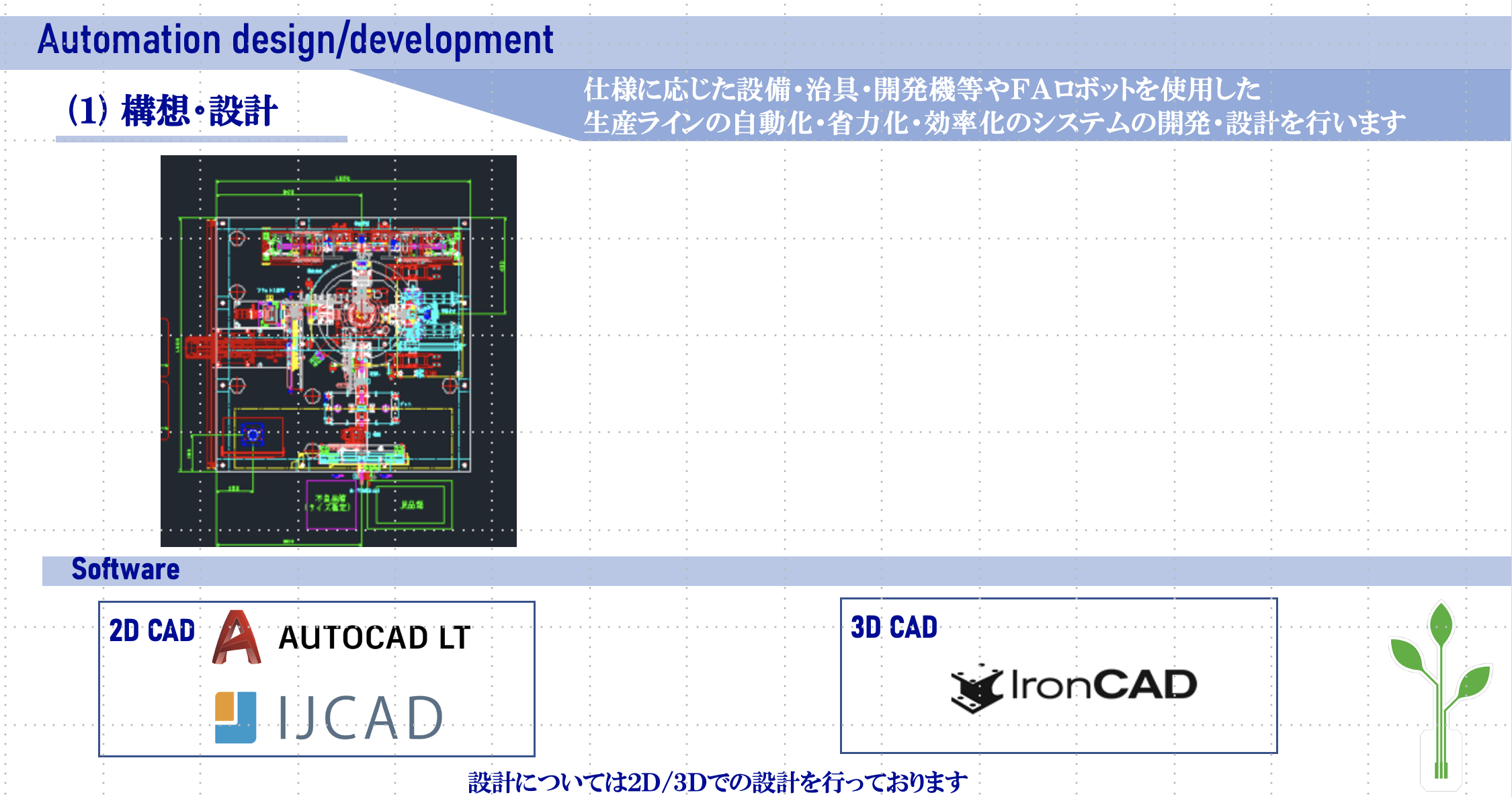 お客様のニーズに合わせた設備を開発・設計し製造からメンテナンスまで一貫しておこなっております。